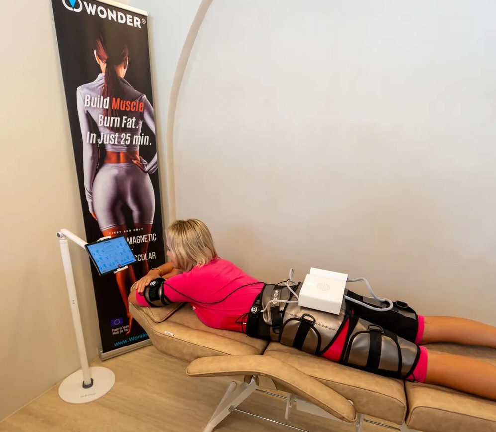 Sculpt and strengthen your body effortlessly with the Wonder AXON Body Sculpting experience at Elite Body Recovery. This 30-minute, non-invasive treatment uses Electrical Muscle Stimulation (EMS) technology to contract and tone muscles, mimicking the effects of high-intensity exercise. Ideal for refining your physique and boosting confidence, it’s a cutting-edge approach to fitness, recovery, and self-care.